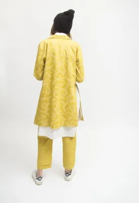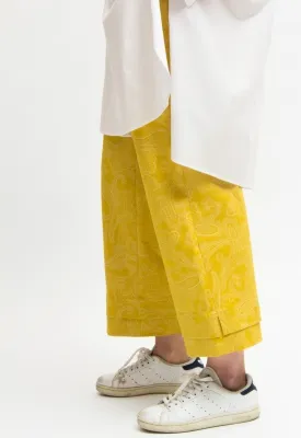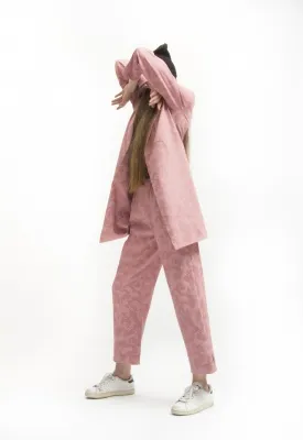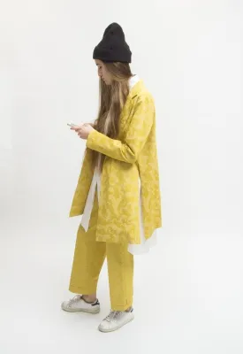 Per la prima micro capsule, ho scelto tele rigide, L’OSAKA blu e color rame: divini col passare del tempo, con i lavaggi e l’usura cambiano colore e diventano morbidi, quasi il corpo li modellasse a propria misura. Per la nuova collezione invece ho azzardato dei colori più accesi optando per GRACE PRINT giallo e rosa, denim serigrafato a disegno cashmere da indossare con una t-shirt bianca e un paio di sneakers. Pantalone e giacca, un completo anni 80 rivisitato in modo super pop e sportivo che guarda ad una donna che i tacchi non ha bene idea di cosa siano.