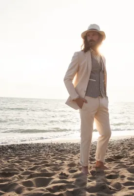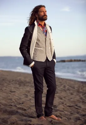 Ho usato la tela BARBADOS a grandi strisce per il completo principale della collezione SS16 chiamato “Dandy sulla spiaggia”, ma anche OSCAR, TOBAGO, ESKIMO.