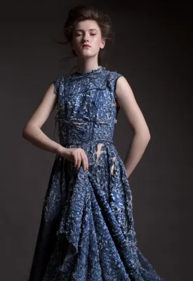 Finora ho utilizzato il denim nero da 12,5 per la creazione della mia gonna Irregular Pleated Stitched della collezione FW17-18 e ho intenzione di espandere la scelta di denim rigidi e indaco per la prossima stagione per creare pezzi più eleganti.